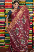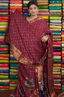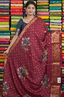 Georgette Crepe Checks And Flower Design Marron Red Saree