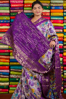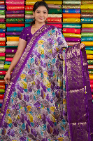 Georgette Dola Silk Digital Print Half White With Purple Saree