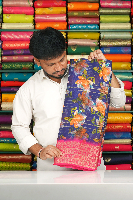 Georgette Doriya Weaving Lotus Floral Digital Print Dark Navy Blue With Pink Saree