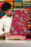 Georgette Floral Digital Print Arani Border Bright Magenta Pink Saree