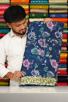 Georgette Floral Digital Print Arani Border Dark Peacock Blue Saree