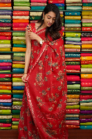Georgette Floral Print Red Saree