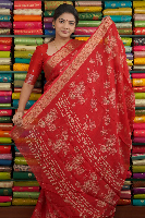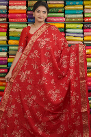 Georgette Floral Print Red Saree
