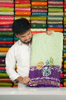 Georgette Ganga Jamuna Checks With Printed Pista Green With Pink And Purple Saree