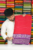 Georgette Gold Zari Doriya Weaving Line Pink With Purple Saree