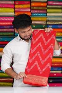 Georgette Gold Zari Weaving Printed Pattern Red Saree