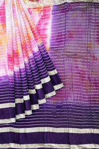 Georgette Shibori Tie And Die Pink And Purple Saree