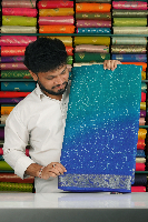 Georgette Tie And Die Bandini Print Coppersulphate Blue With Royal Blue Saree