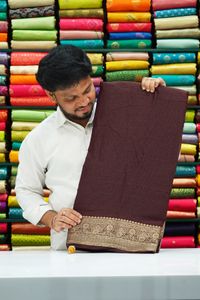 German Georgette Badla Zari Weaving Coffe Brown With Yellow Saree