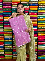 Glass Chiffon Embroidery Butti Dark Lilac Saree