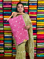 Glass Chiffon Embroidery Butti Peach Pink Saree