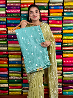 Glass Chiffon Embroidery Butti Sea Green Saree