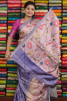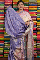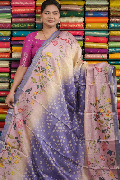 Italian Crepe Tie And Die Light Cream With Lavender Saree