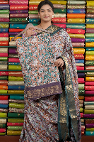 Italian Silk Printed Light Brown With Brinjal Saree