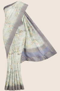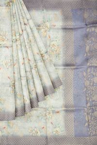 Johrivaj Catalouge Tissue With Digital Print Cream And Lavendar Saree