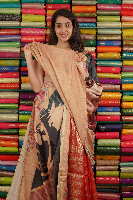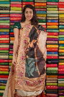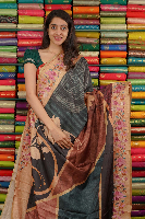 Jute Bagalpuri Silk Digital Print Black With Cream Saree