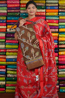 Jute Bhagalpuri Brasso Print Brown Saree