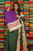 Jute Georgette Floral Border And Checks Purple With Mustard Yellow Saree
