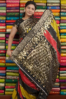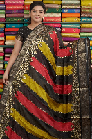 Jute Georgette Maika Print Yellow And Red With Black Saree