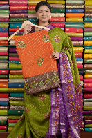 Jute Georgette Zari Checks Orange With Brown Saree