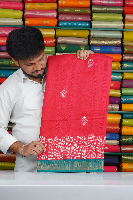 Jute Lenin Silk Bathik Print Bright Pink With Rama Green Saree