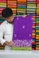Jute Lenin Silk Bathik Print Purple With Parrot Green Saree
