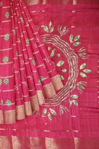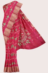 Jute Silk Bandini Print And Flower Butti Bright Pink Saree