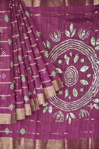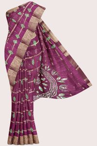 Jute Silk Bandini Print And Flower Butti Magenta Pink Saree