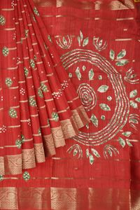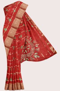 Jute Silk Bandini Print And Flower Butti Red Saree