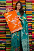 Jute Silk Floral Design Orange Saree