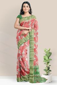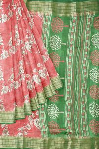 Jute Silk Floral Print Dark Onion Pink And Green Saree
