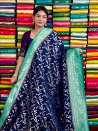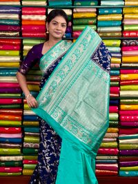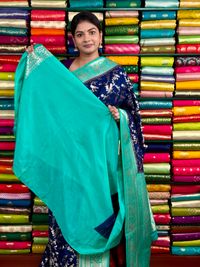 Jute Silk Full Zal Design Navy Blue And Rama Green Saree