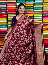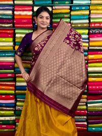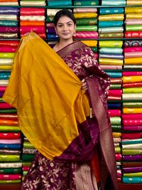 Jute Silk Full Zal Design Wine And Yellow Saree