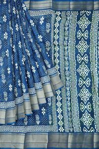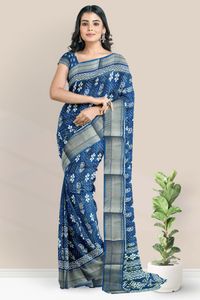Jute Silk Printed Bright Peacock Blue Saree