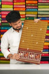 Jute Tussar Doriya Weaving Ikkath Border Mehandi Green With Chocolate Saree