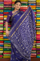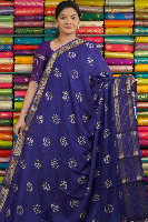 Jute Tussar Printed Navy Blue Saree