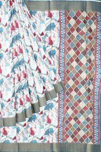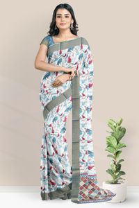 Jute With Bhagalpuri Silk Mix Digital Print Rose Pink And Ash Saree