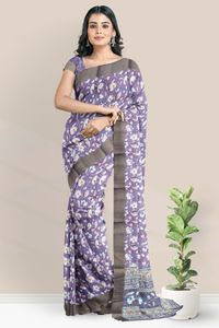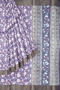 Jute With Bhagalpuri Silk Mix Floral Digital Print Dark Purple Saree