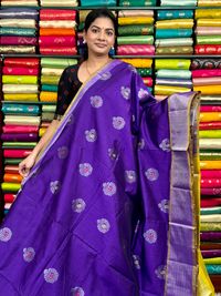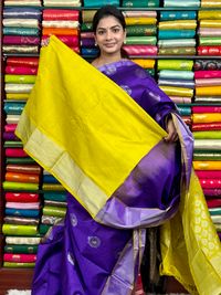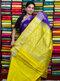 Kollam Pattu Butti Purple With Lemon Yellow Saree