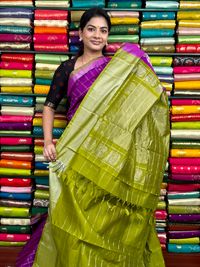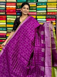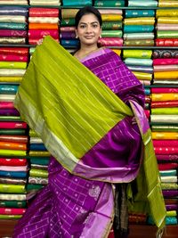 Kollam Pattu Checks And Butti Magenta Pink With Green Saree