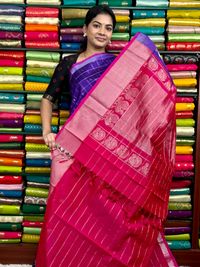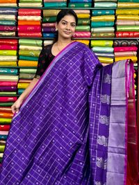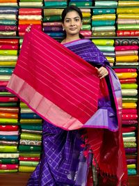 Kollam Pattu Checks And Butti Purple With Pink Saree