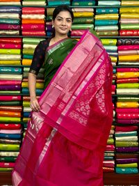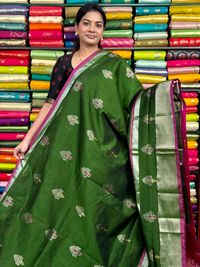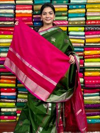Kollam Pattu Zari Butti Mehandi Green With Pink Saree
