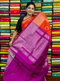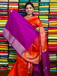 Kollam Pattu Zari Butti Orange With Pink Saree