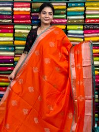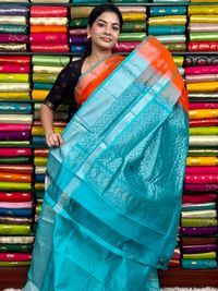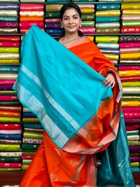 Kollam Pattu Zari Butti Orange With Sea Green Saree