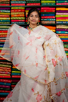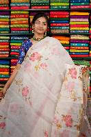 Kora Silk Foil Print Half White Saree