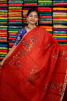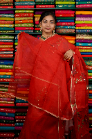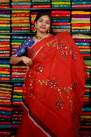 Kora Silk Foil Print Red Saree