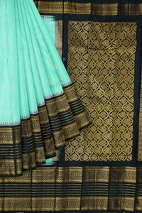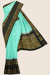 Korvai Silk Gap Border Light Sea Green And Black Saree