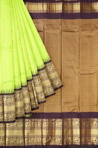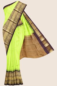 Korvai Silk Kanchi Border Neon Green And Chocolate Brown Saree