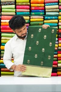 Kosa Silk Flower Design Dark Green Saree