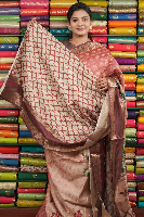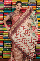 Kosa Silk Tie And Die Cream With Wine Saree